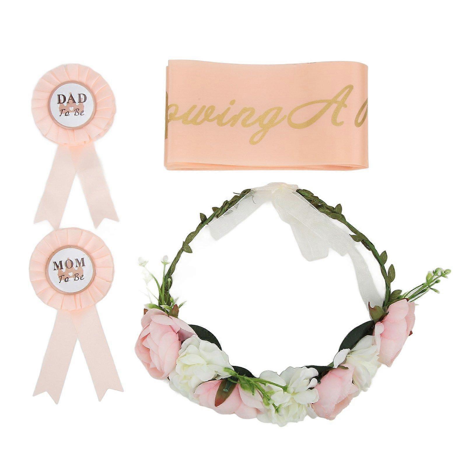Baby Shower Tiara Baby Shower Strap Badge Eternal Wreath Floral Headpiece Set Decoration Photo Props for Baby Shower Party