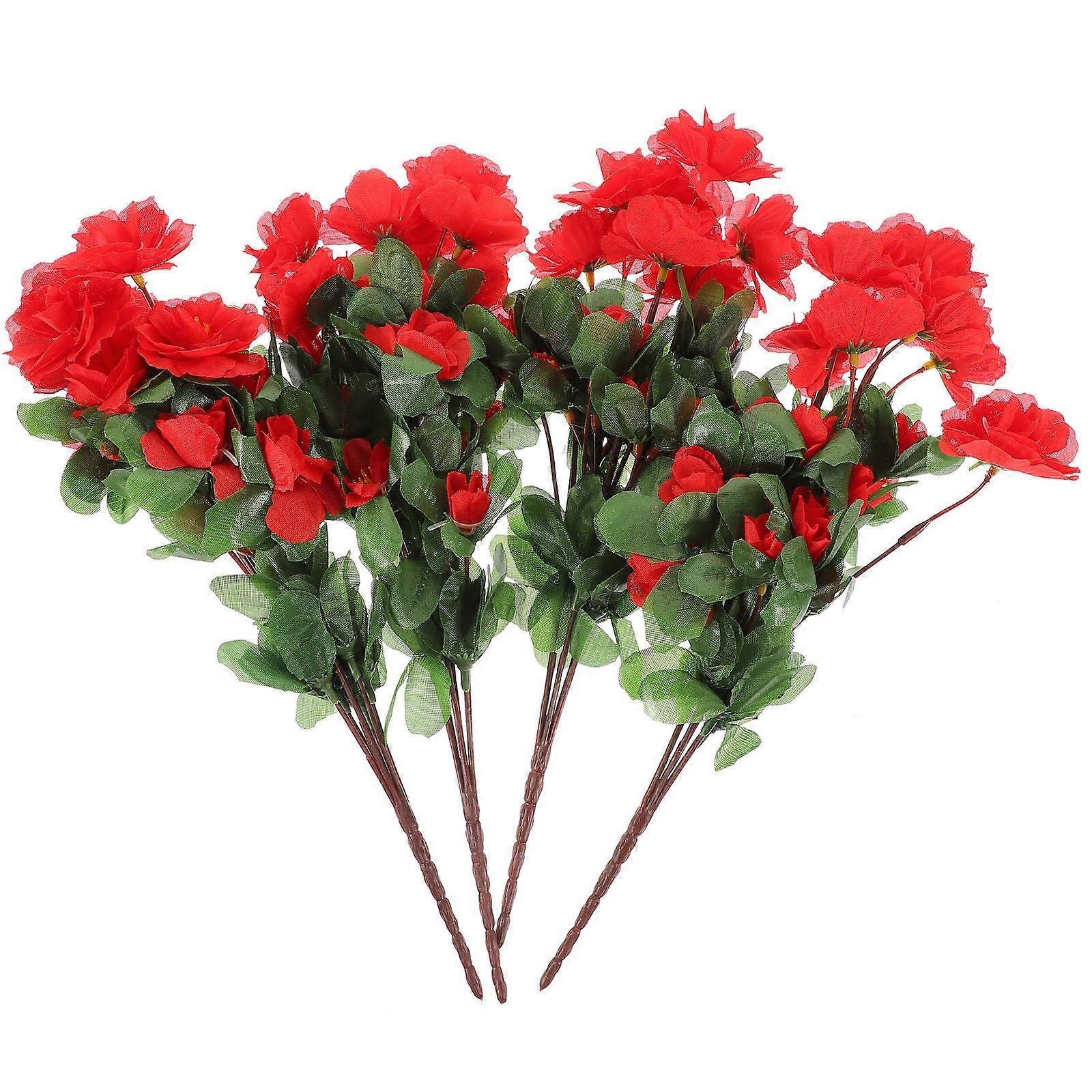Artificial Rhododendron Flowers Decorative Flower Home Decor Realistic Style Red 15X33CM 4Pcs