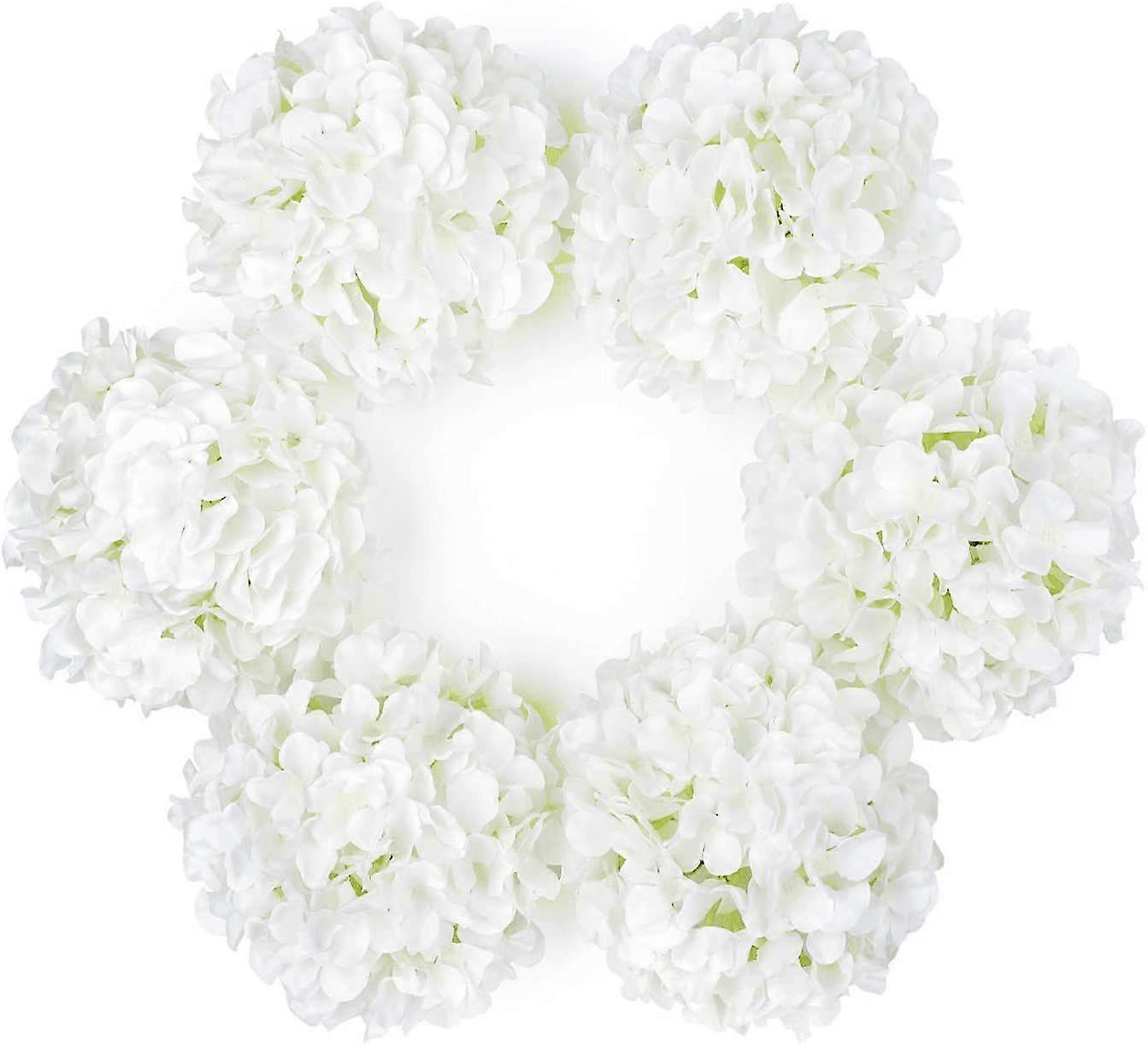 Artificial Bigger Silk Hydrangea Flower Heads Fake White Hydrangea Flowers for Wedding Home Garden Centerpiece Pack of 6