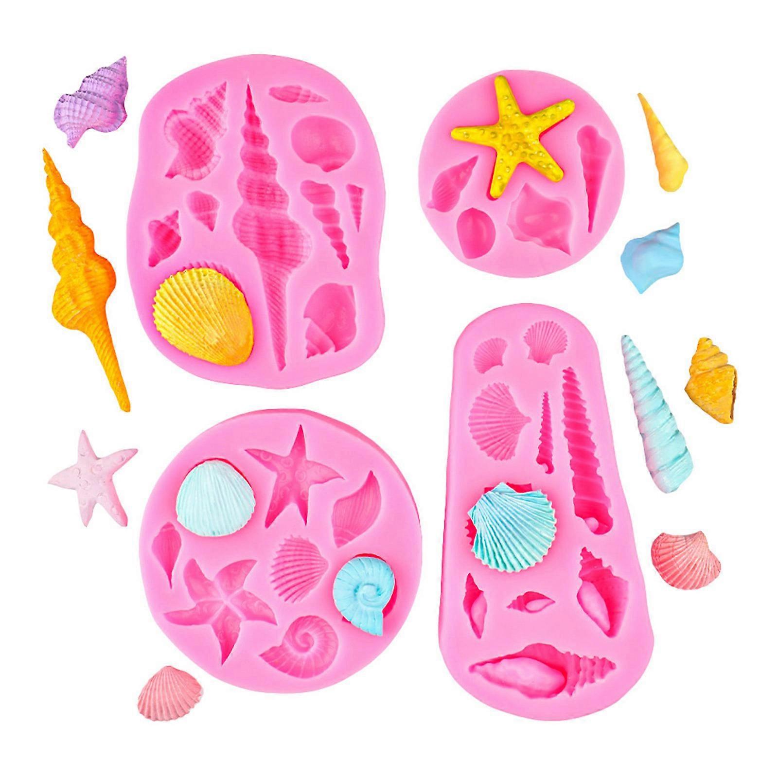 Professional Baking Accessories 4pc Silicone Shell Mould Set Easy Demold Shell Shape Silicone Mould for Baking Pink