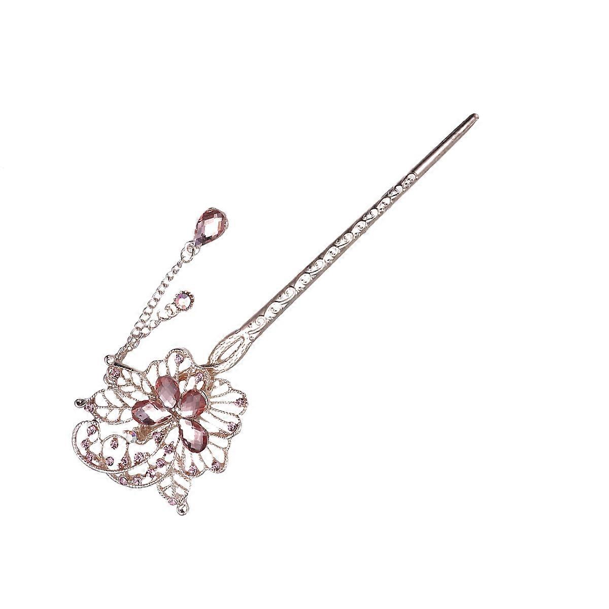 Vintage Hair Accessories Rhinestone Hairpin Pink Crystal Shape Updo Tassel For Women Girls Casual Wear 1Set