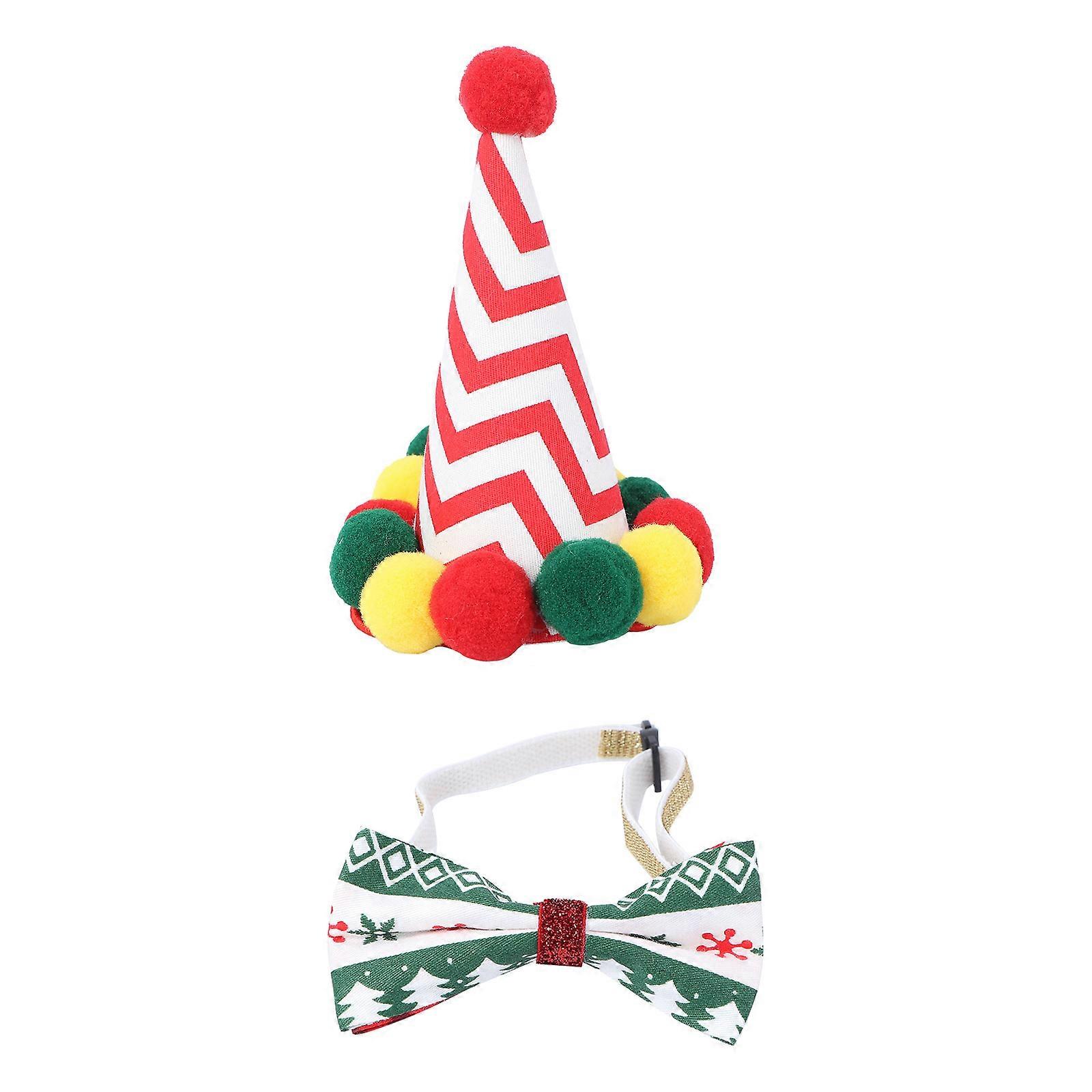 Dog Birthday Party Accessories Pet Hat with Bow Tie Christmas Cat Decorations Snowflake Design 1Set