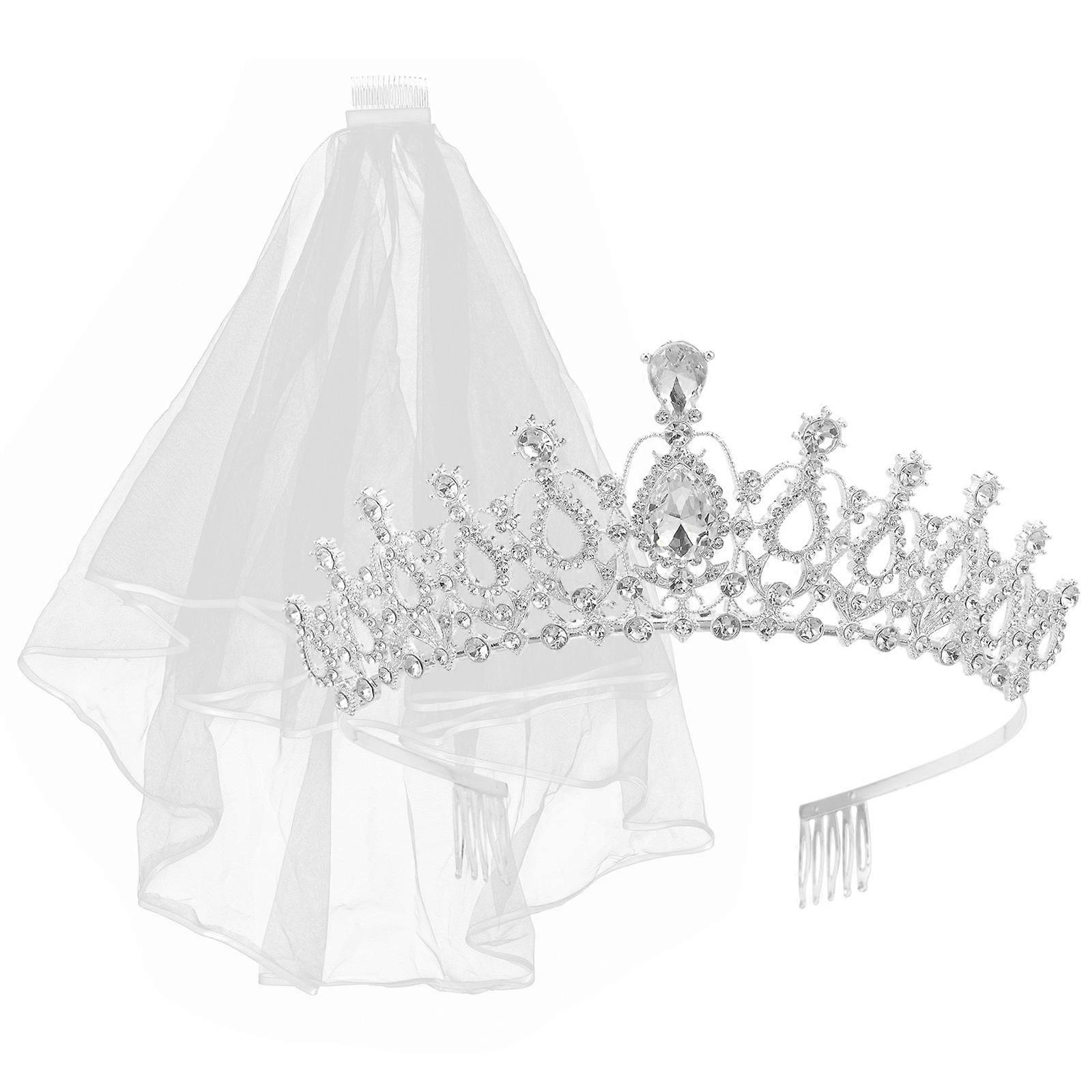 Bride Hair Accessories Rhinestone Tiara Crown Veil Photography Dancing Clover Shapes 2Pcs