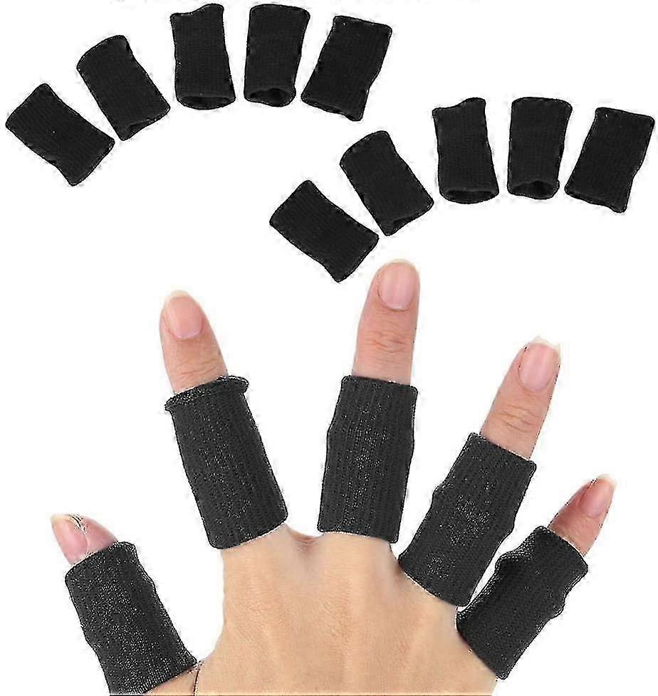 Finger Protector Sleeve, 10pcs Stretchy Flexible Fingers Splint Support Finger Protector(black)