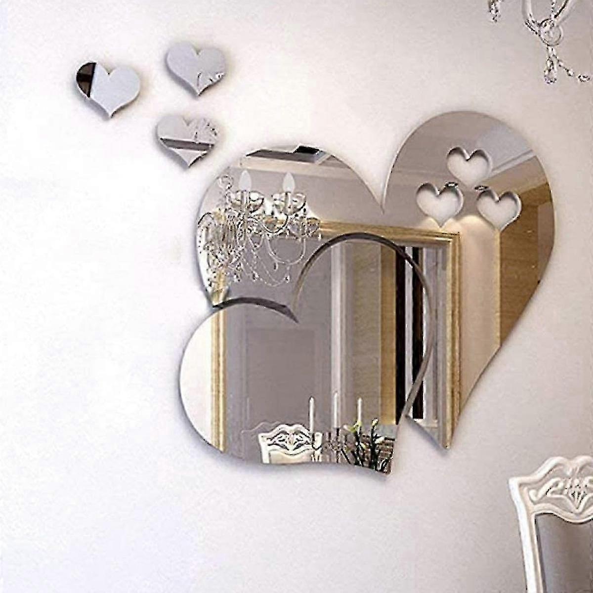Acrylic Mirror Wall Decor Stickers Double Heart Shaped Self Adhesive Wall Art Decals for Living Room Bedroom Bathroom