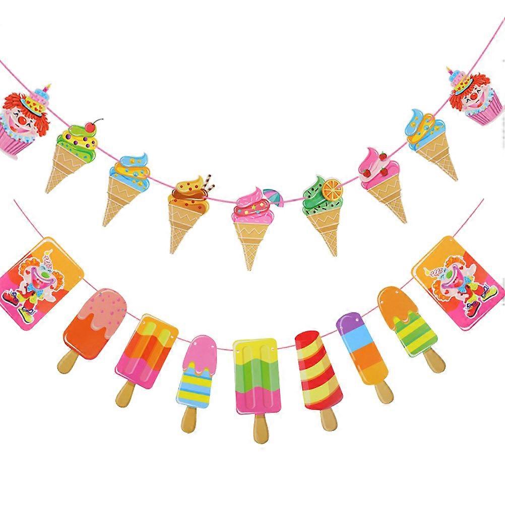 Ice Cream Flag Cartoon Ice Cream Decorative Paper Banner Flag For Photoshoot Colorful 17x9x0.1cm Decorative 2Pcs