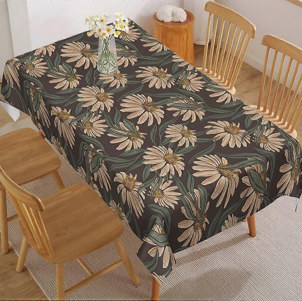 White Beige Sunflower Rectangle Tablecloth 60x90 Inch Rustic Vintage Floral Sunflower Decor for Home Spring Summer Green Table Cloth Rectangle Stain R