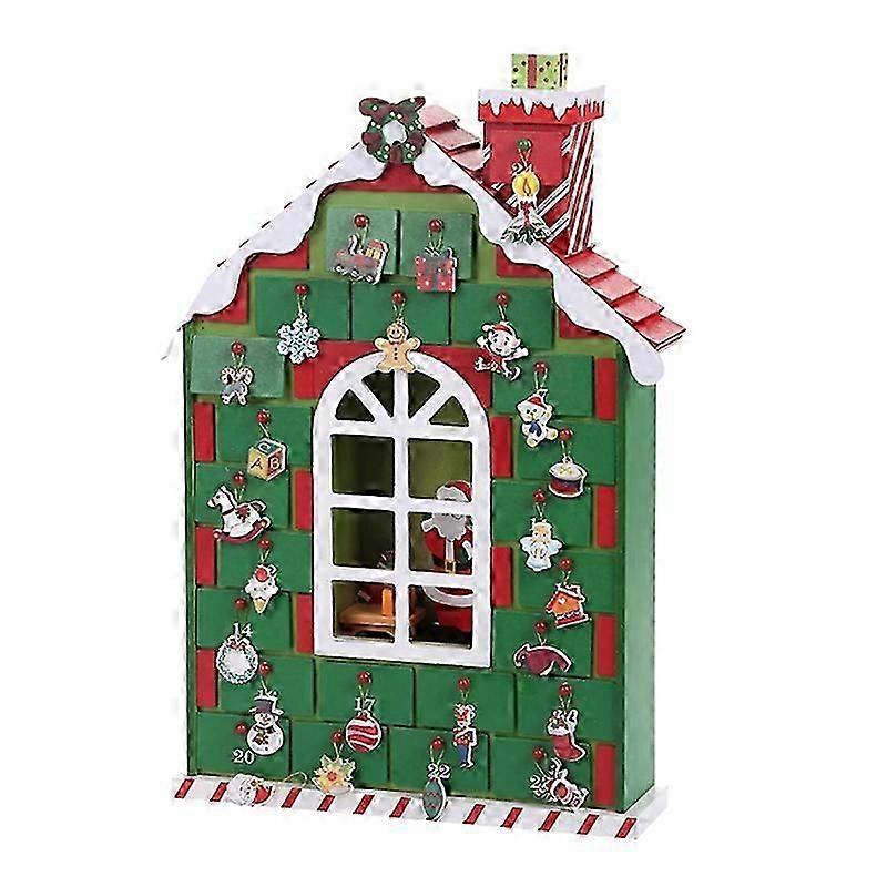 Green Nativity House Wooden Advent Calendar Countdown Christmas Party Decor