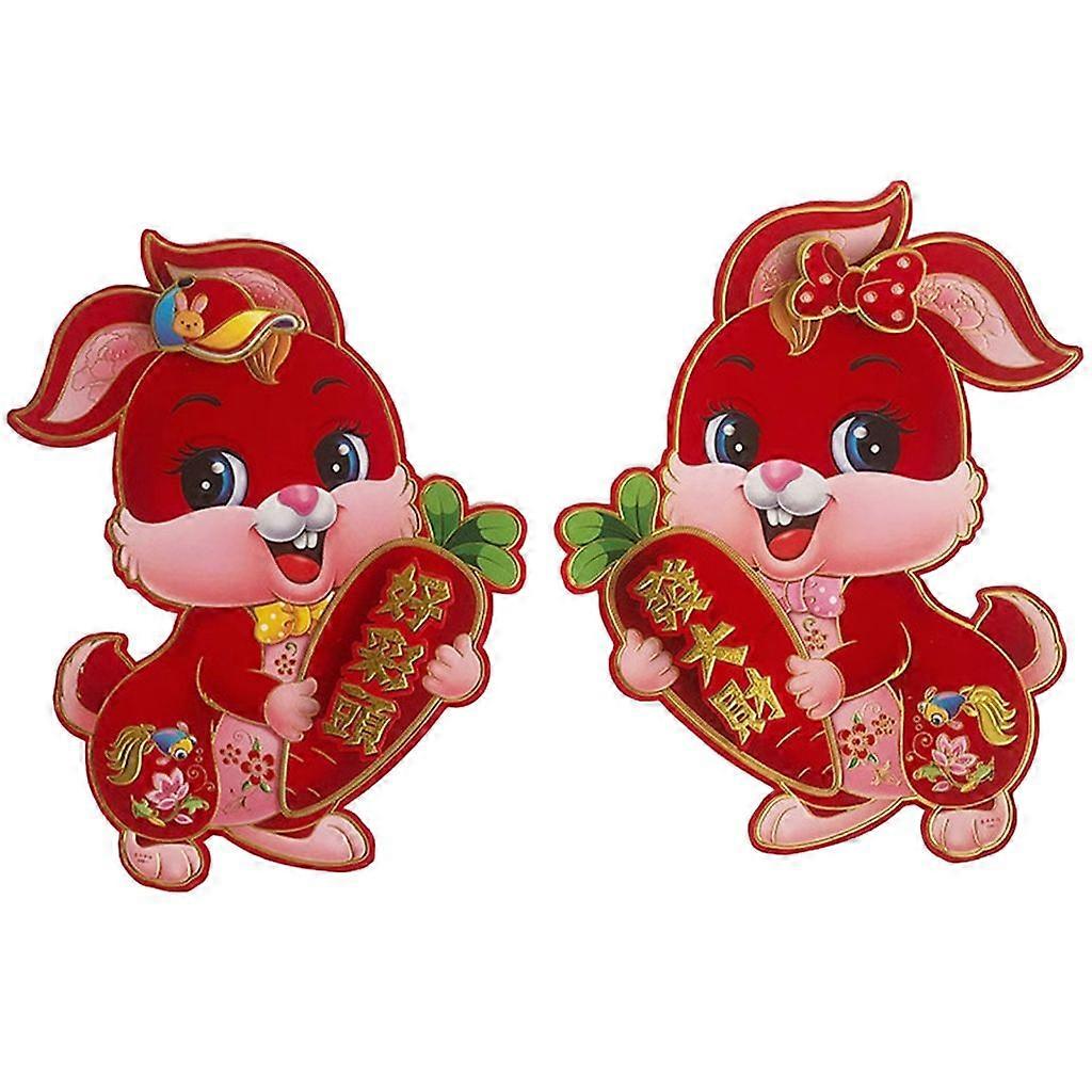 Chinese Rabbit Year Door Sticker 1 Pair Cute Bunny Decorative Stickers