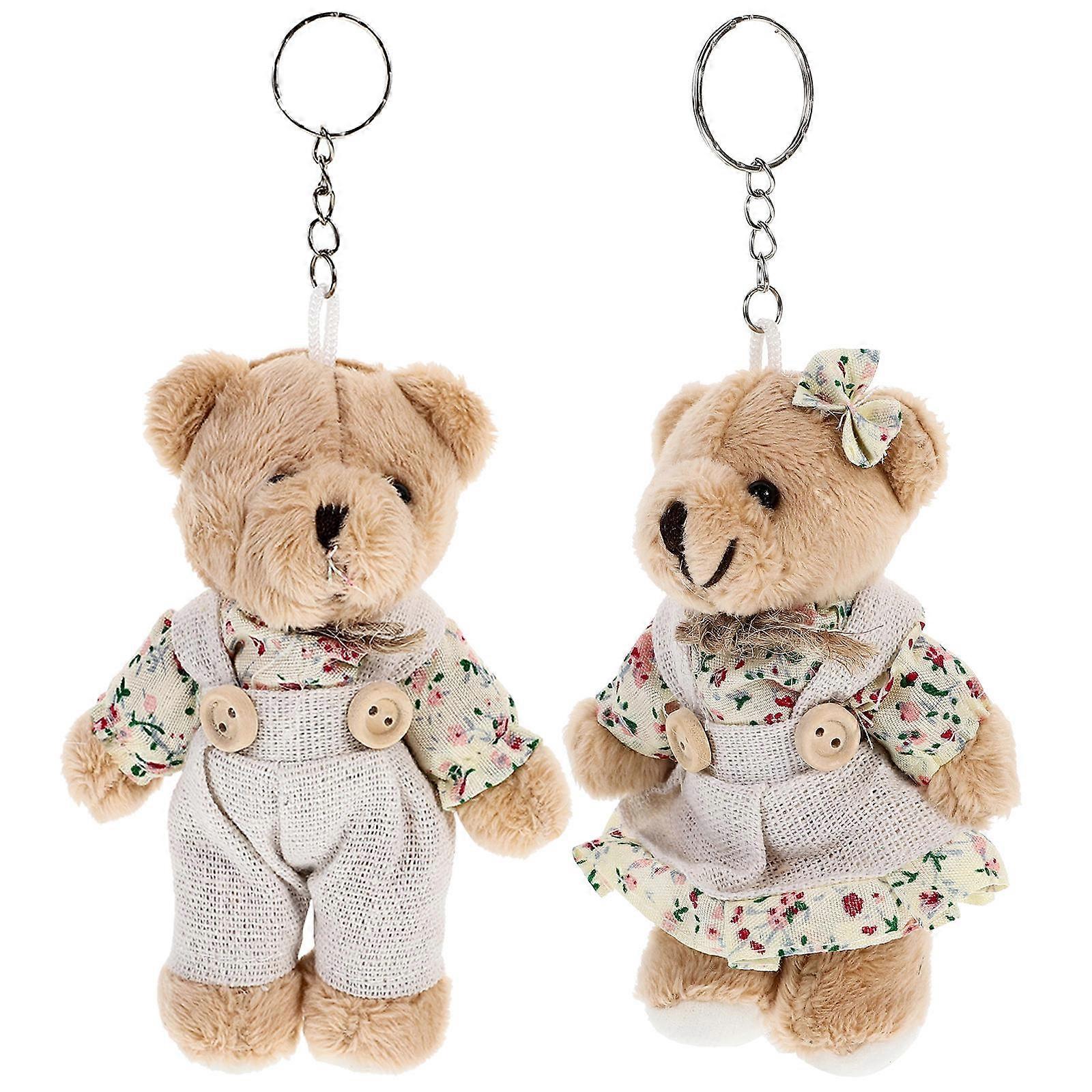 Floral Plush Bear Keychain Set Cute Stuffed Animal Pendant for Bags, Backpacks & Purse Accessories Soft Couple Bear Key Ring Charm for Teens and