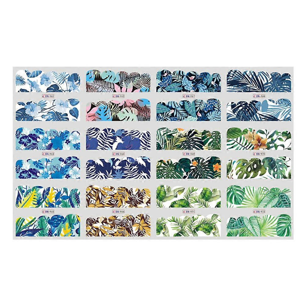 Florals And Leaves Nail Tips Decal For Fun Manicure Designs Special Events Easy Application 24 Sheets