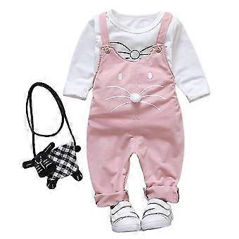 Toddlers Kids Boys Girls Cat Print For Long Sleeve Tops + Overalls Pants Casual Outfits Set