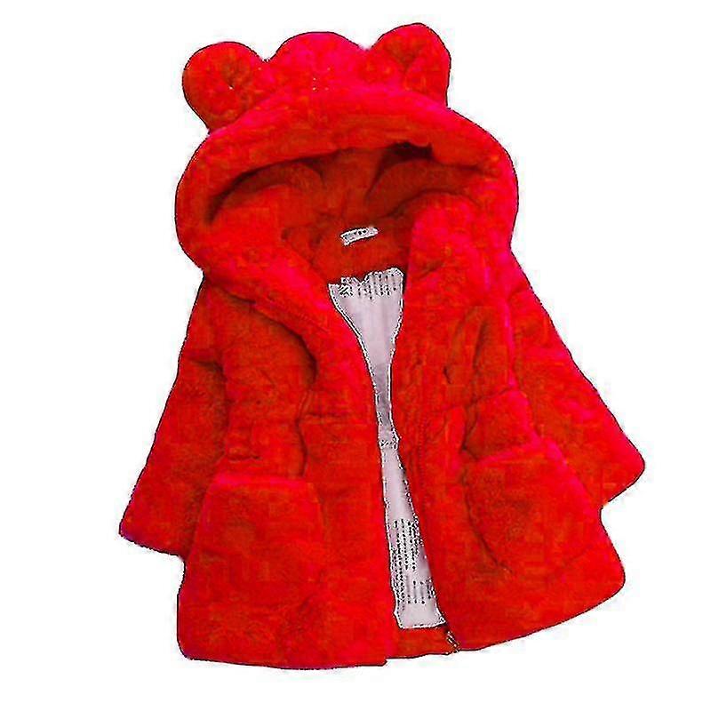 Children Girls Fluffy Faux Fur Hooded Parka Coat Fleece Thick Jacket Winter Outwear/YY