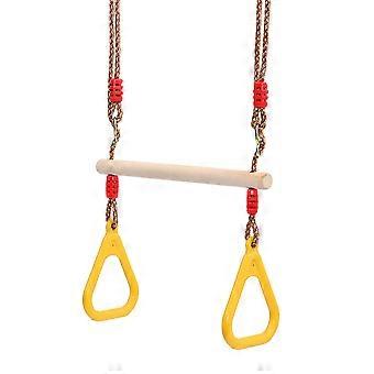 الأطفال الكبار في الأماكن المغلقة في الهواء الطلق خشبية أرجوحة بار مع حلقات بلاستيكية للرياضة
