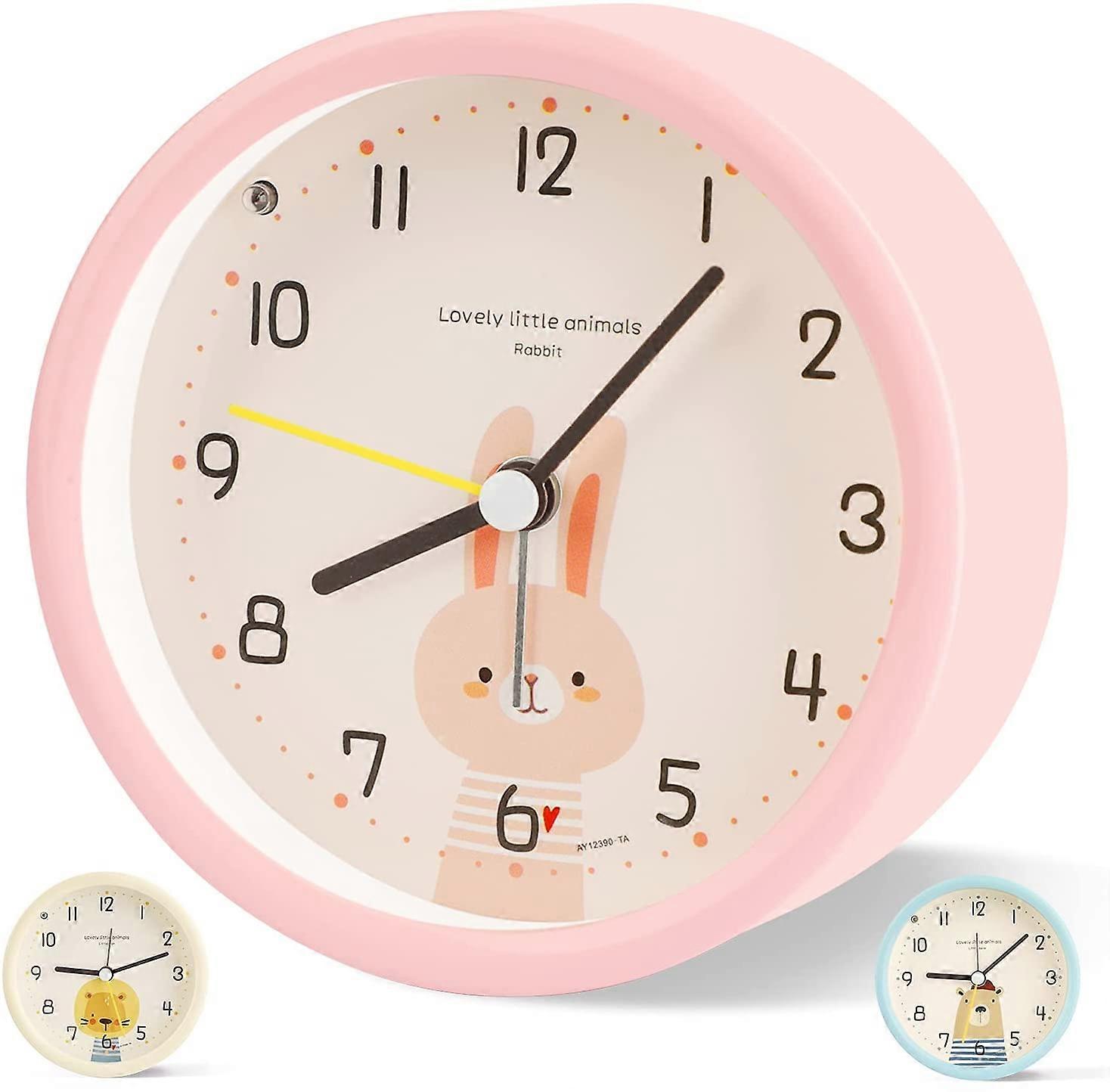 Children's Alarm Clock Analog Boy Girl Silent Battery Powered Table Clocks No Ticking Bedside Big Function Light for Bedroom Office (Pink)