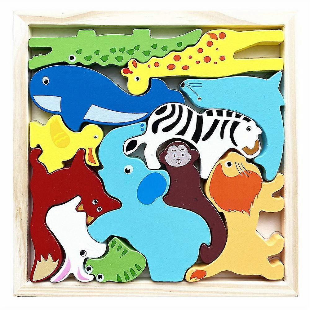 Wooden Puzzles Building Block Cartoon Animal Creative Theme Board Jigsaw Game Early Educational Toy Gifts