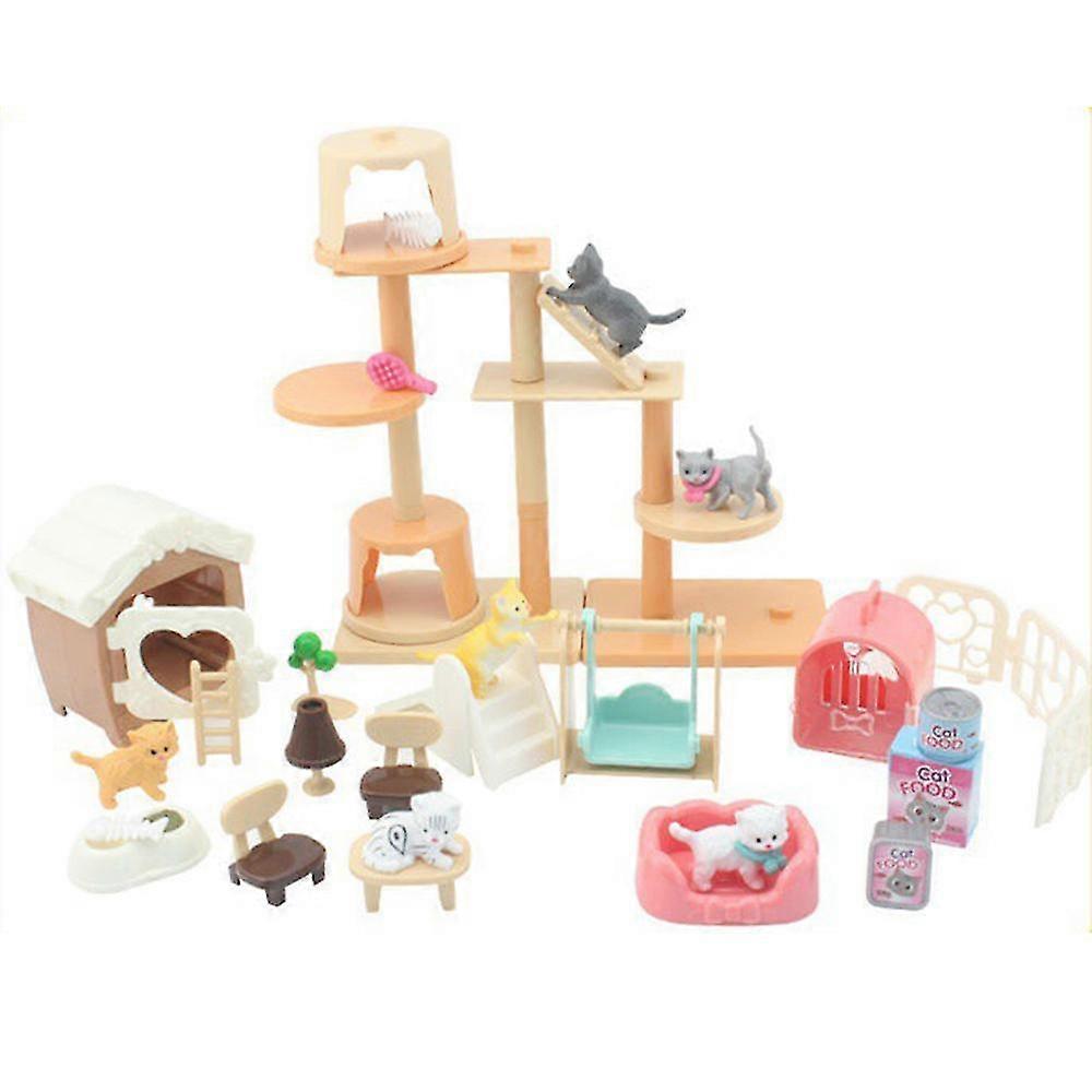 Pet Pretend Play Toys 43 Pcs Cat Figures Playset Toy Realistic Detailed Care Center TY