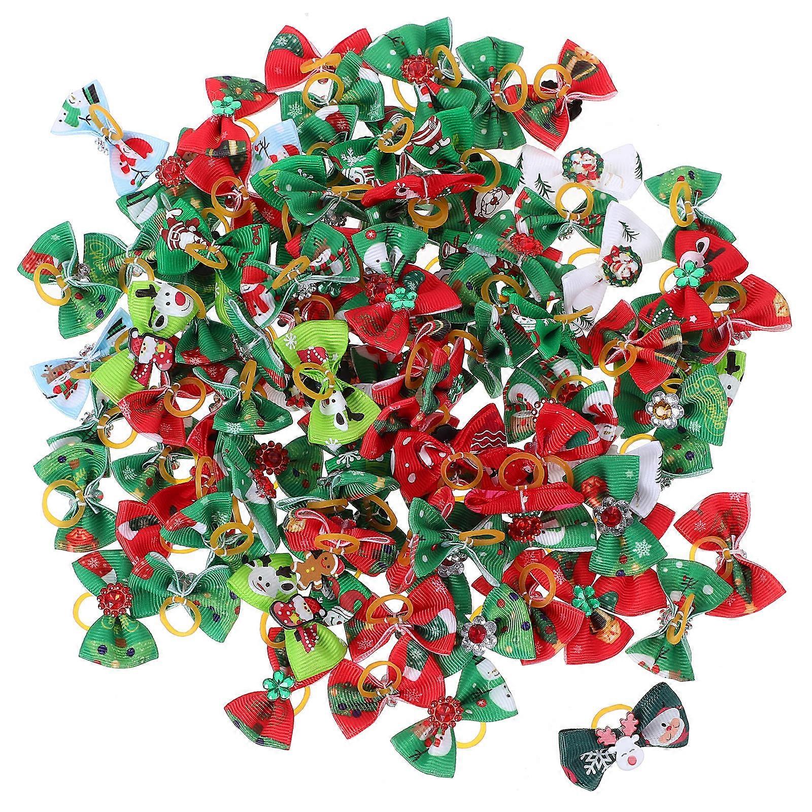 Pet Hair Tie Christmas Celebration Dog Accessories Cloth Hair Ring Round Pet Hair Assorted Color 100Pcs