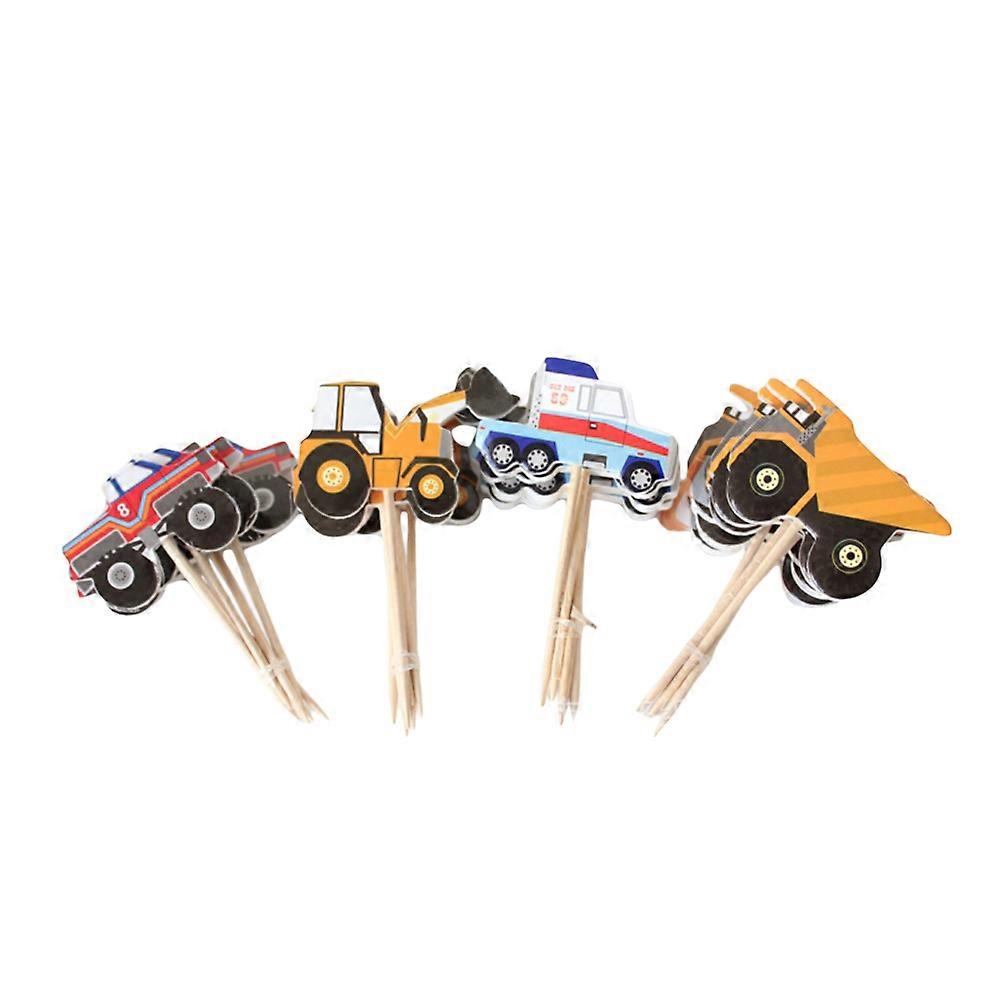 Creative Construction Truck Themed Cake Toppers Paper Picks for Birthday Party Decoration Assorted Color 48PCS