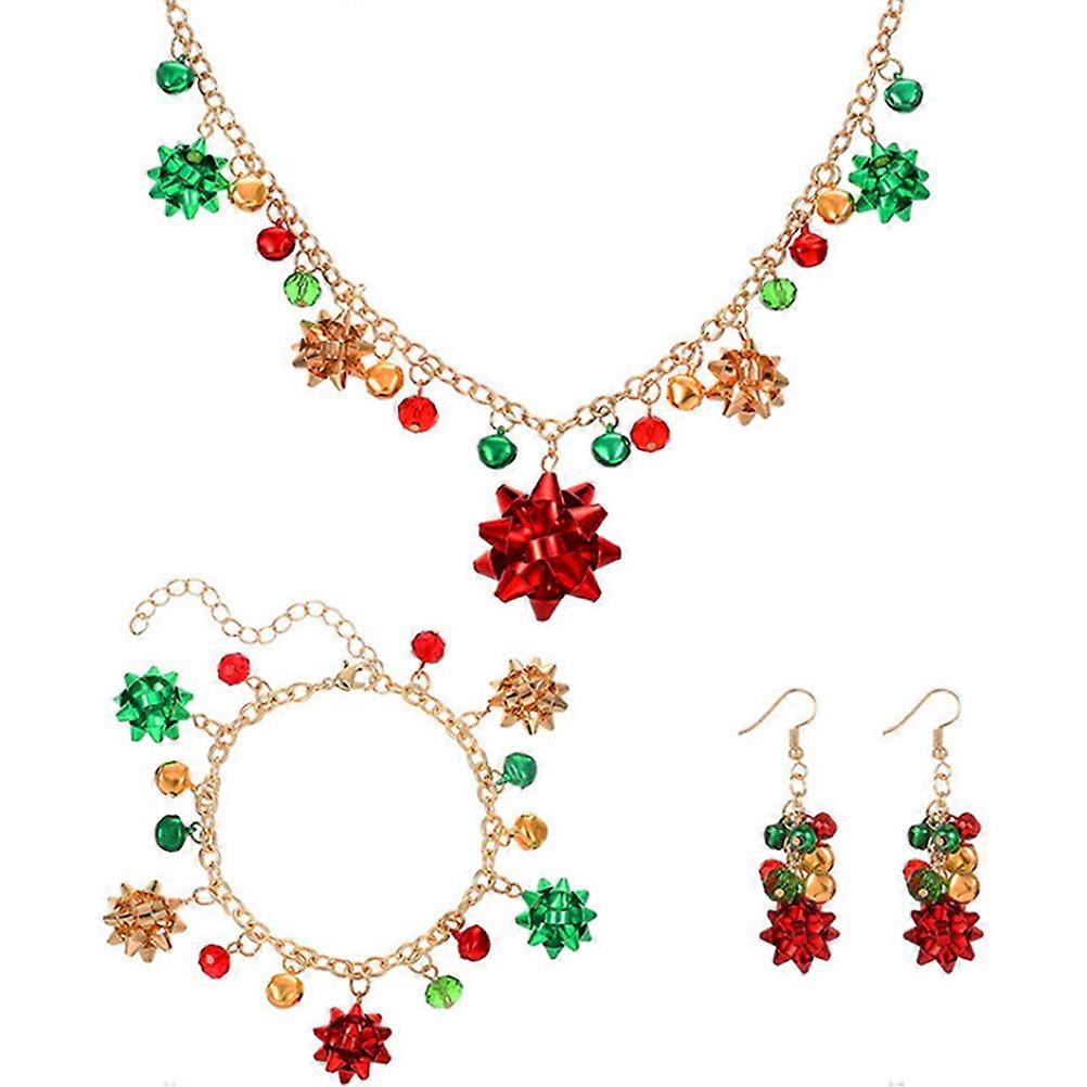 Creative Jingle Bell Earrings Necklace Bracelet Set For Women Girls Christmas Costume Accessory 1 Set