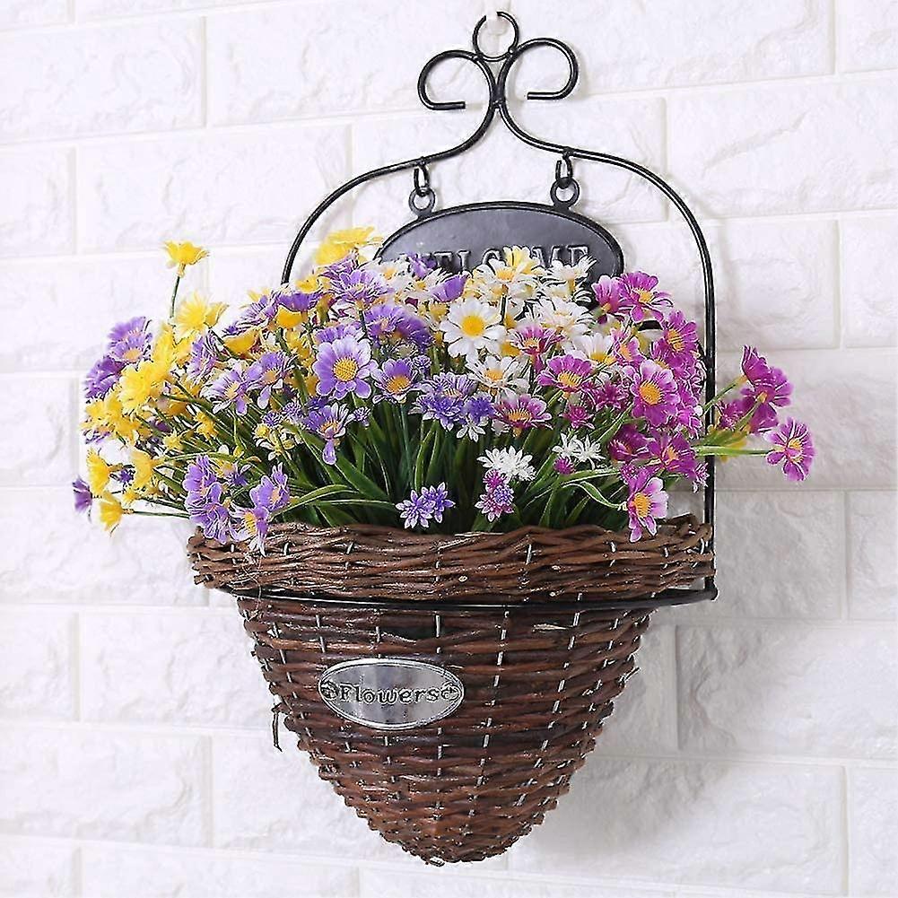 Artificial Daisies Flowers 4pcs Outdoor Fake Foliage Greenery Faux Plants Shrubs Plastic Bushes For Window Box Hanging Planter Farmhouse Indoor Outsid
