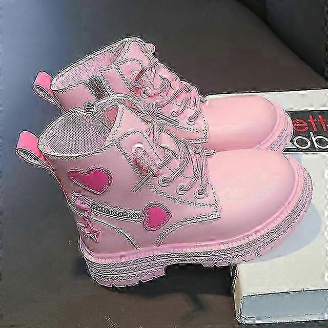 British PU Cool Girls Autumn and Winter Casual Cotton Boots Soft Pink with Love Side Zip Princess Kids Fashion Girls Ankle Boots