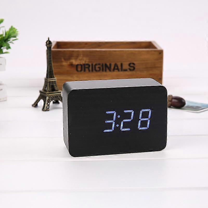 Battery\usb Charged Led Digital Alarm Clock, Display Temperature, 3 Groups Of Alarms And 2 Groups Of Alarm Modes, 3 Brightness Adjustments (black Wood