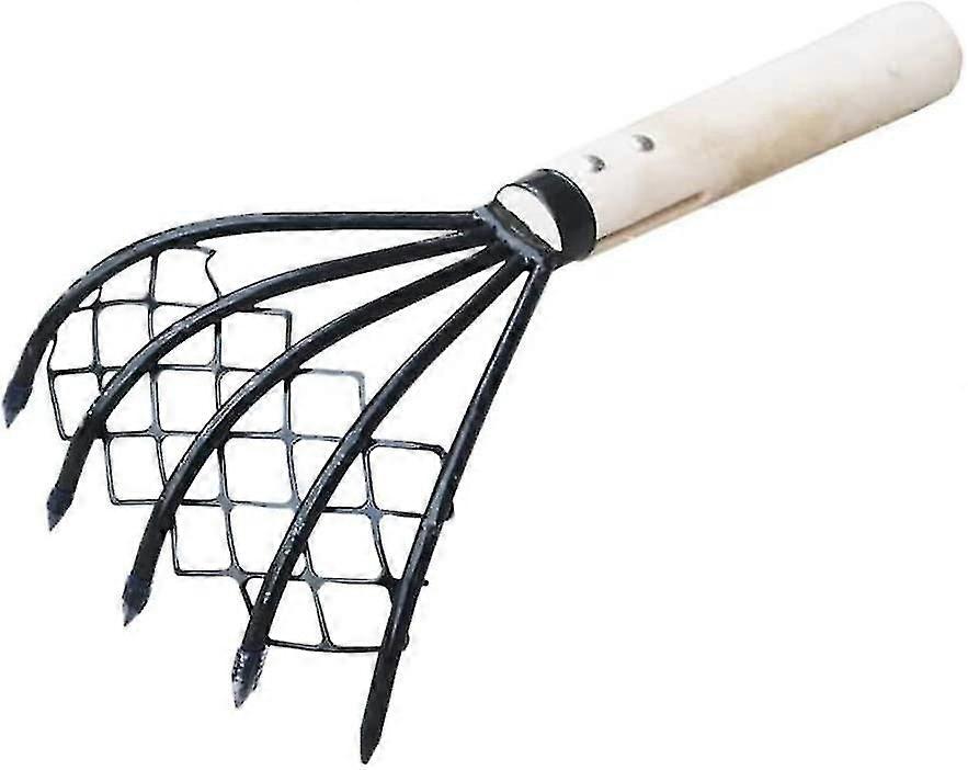 Description: With net design, makes cleaning more worry-free. Pointed claw design, fast digging rake. Wooden handle, won't hurt hands. Practical beach dig seafood tool. Small size, easy to carry. Specification: Material: iron+wood handle Color: black+beige Size(approx): 26*12.5cm(L*W) Handle length(approx): 14cm Package: 1 pc x Clam rake Note: 1. Due to the light and screen difference, the item's color may be slightly different from the pictures. 2. Please allow 1-2 cm differences due to manual measurement. Materials: Made of high quality, durable and long-lasting materials. Environmentally friendly, easy to carry and very safe. With its mesh design, it makes cleaning easier. This claw rake is compact in size, making it easy to carry. Also, a hand rake is perfect for working in small and tight spaces that require delicate touches. Our 5-tine manual rake features high quality, sharp claws that are exceptional for digging, loosening and weeding through dirt, dirt and sand The mesh design makes it easy to rinse and clean rocks, shells, or other items right under a faucet without the need for additional cleaning supplies. Multifunctional: Our mesh design allows you to perfectly pick up and contain without any slippage. Besides, it is not only for tidal hunting but also for planting and gardening.