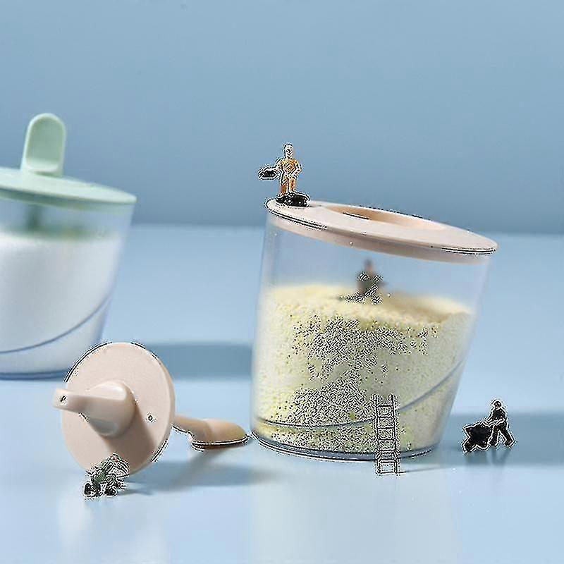 Plastic Seasoning Box Condiment Canister Kitchen Spice Rack Container With Lid Spoon Spice Sugar Bowl For Kitchen Sugar Bowl (2 Pieces. Green + Powder