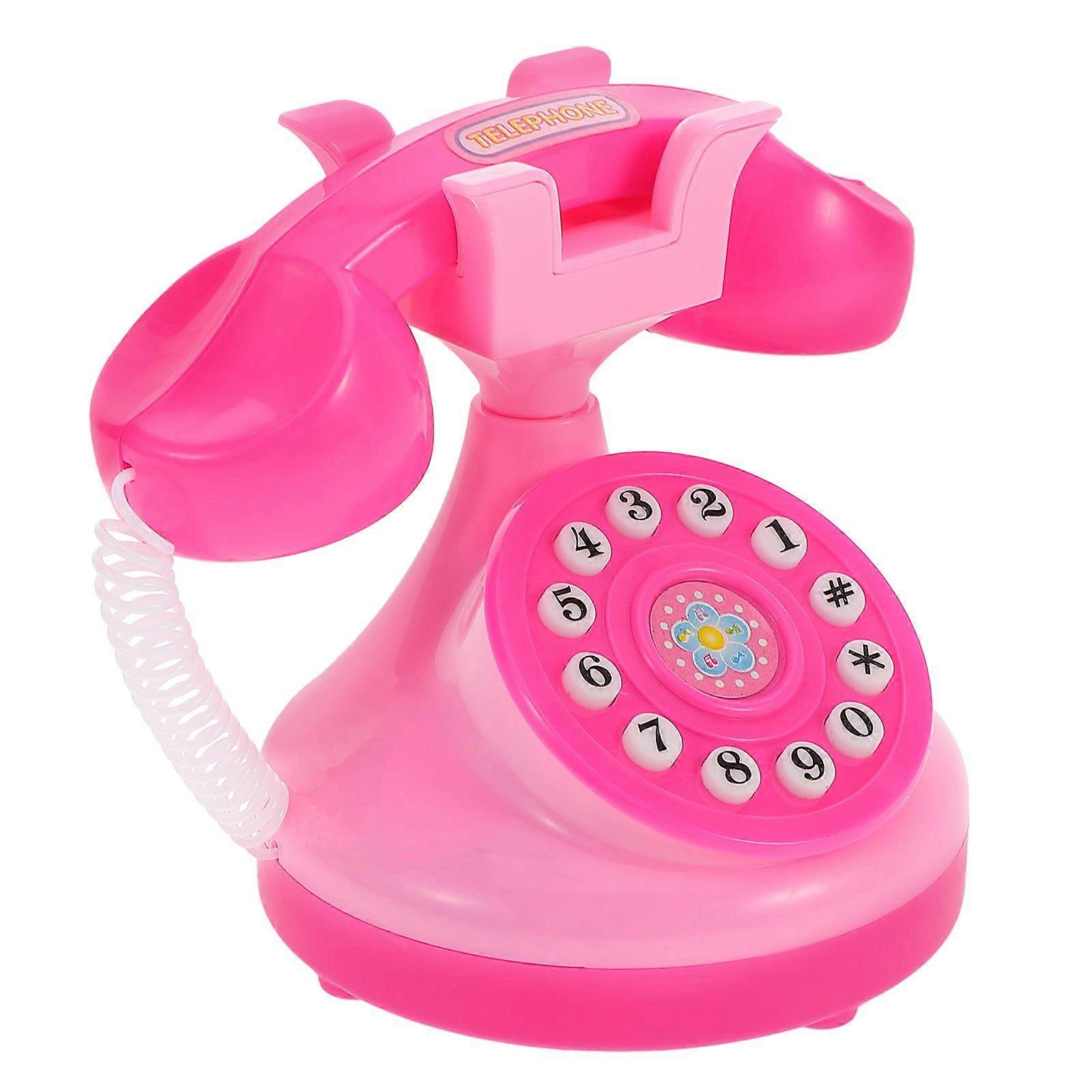 Plastic Telephone Toy Chatter Phone Toy Children Teaching Telephone Pretend Play Phone Rotary Phone Prop Birthday Party Favor for Kids Pink