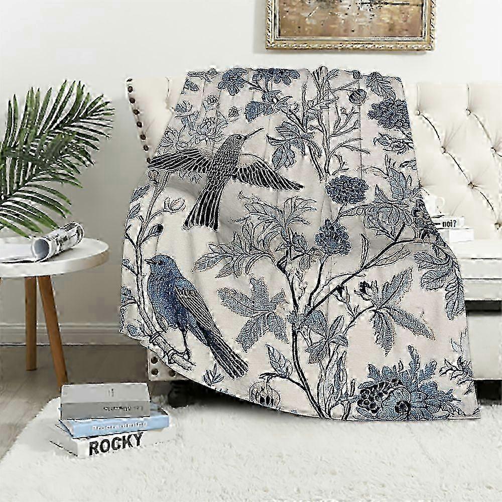 American Country Quilted Throw Blanket Cotton Birds Printing Throw Quilt, Beige-MPOI438