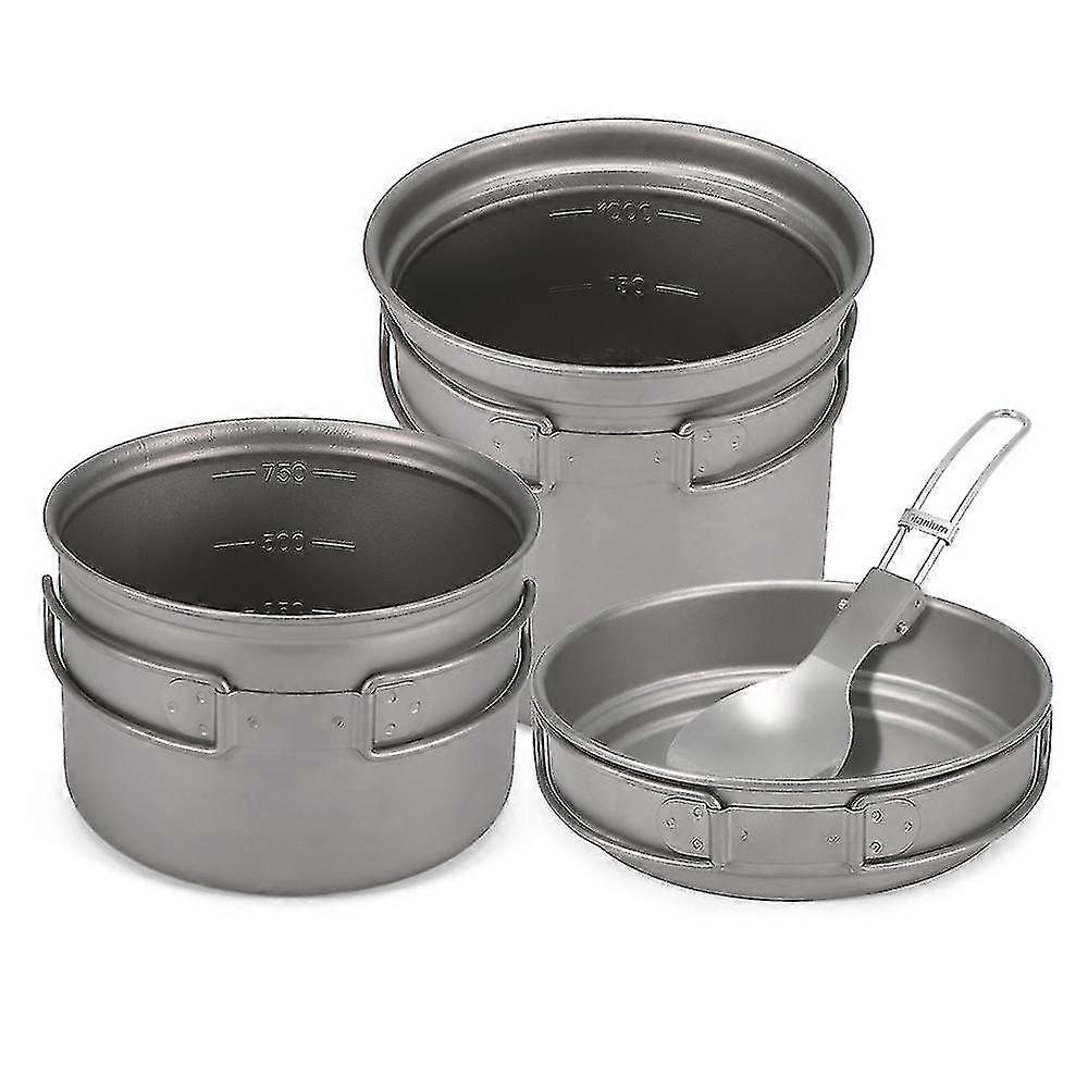 Camping Titanium Cookware Set 1000ml 750ml Pot Pan Spoon Set For Outdoor Camping Hiking Backpacking Picnic Cooking Equipment