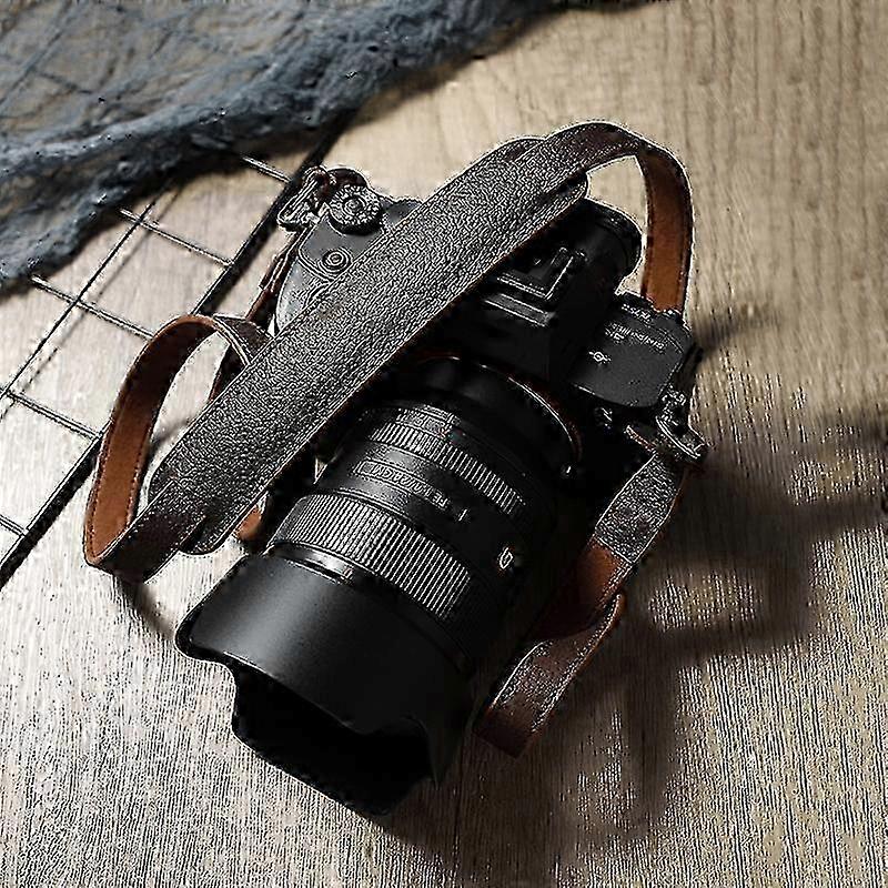 Outdoor Photography Cowhide Leather Camera Shoulder Hanging Neck Winding Strap, Spec: Top-layer (Black)