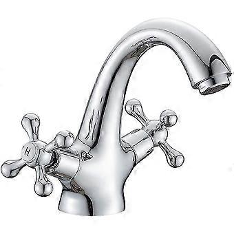 Traditional Victorian Monobloc Basin Mixer Tap Vintage Chrome Dual Cross Handle