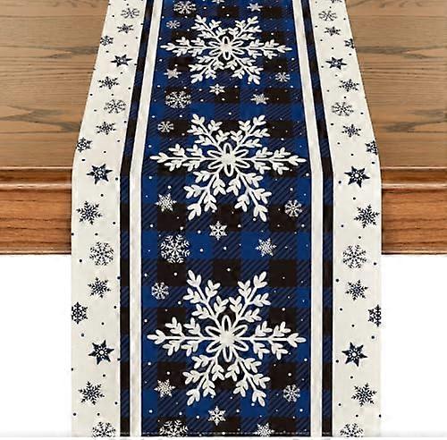 Buffalo Plaid Snowflakes Blue Christmas Table Runner, Seasonal Winter Kitchen Dining Table Decoration for Home Party Decor 13x120 Inch