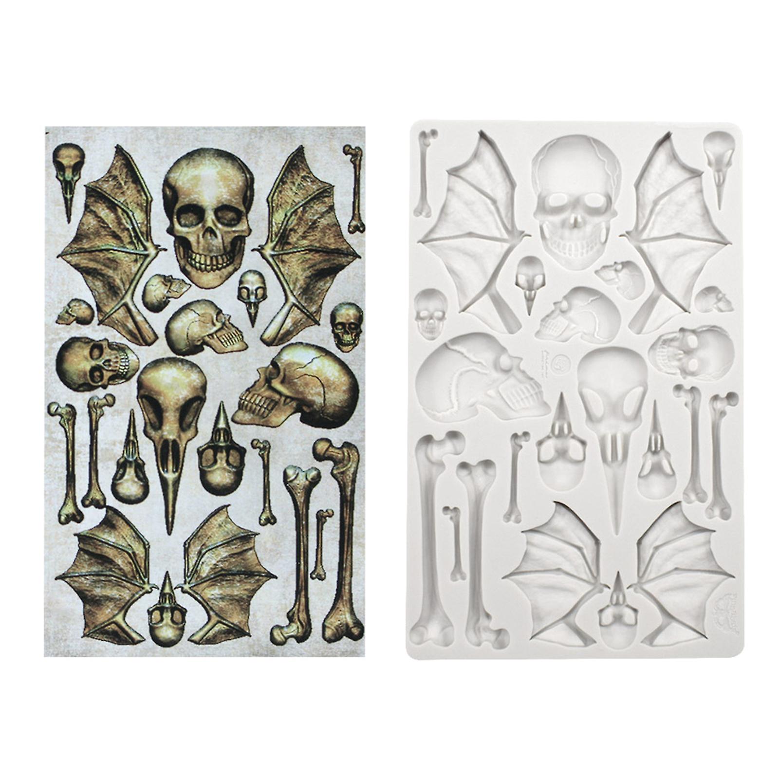 Skulls & Bones Silicone Mold Fondant Cakes Decorating Mould Gift for Halloween