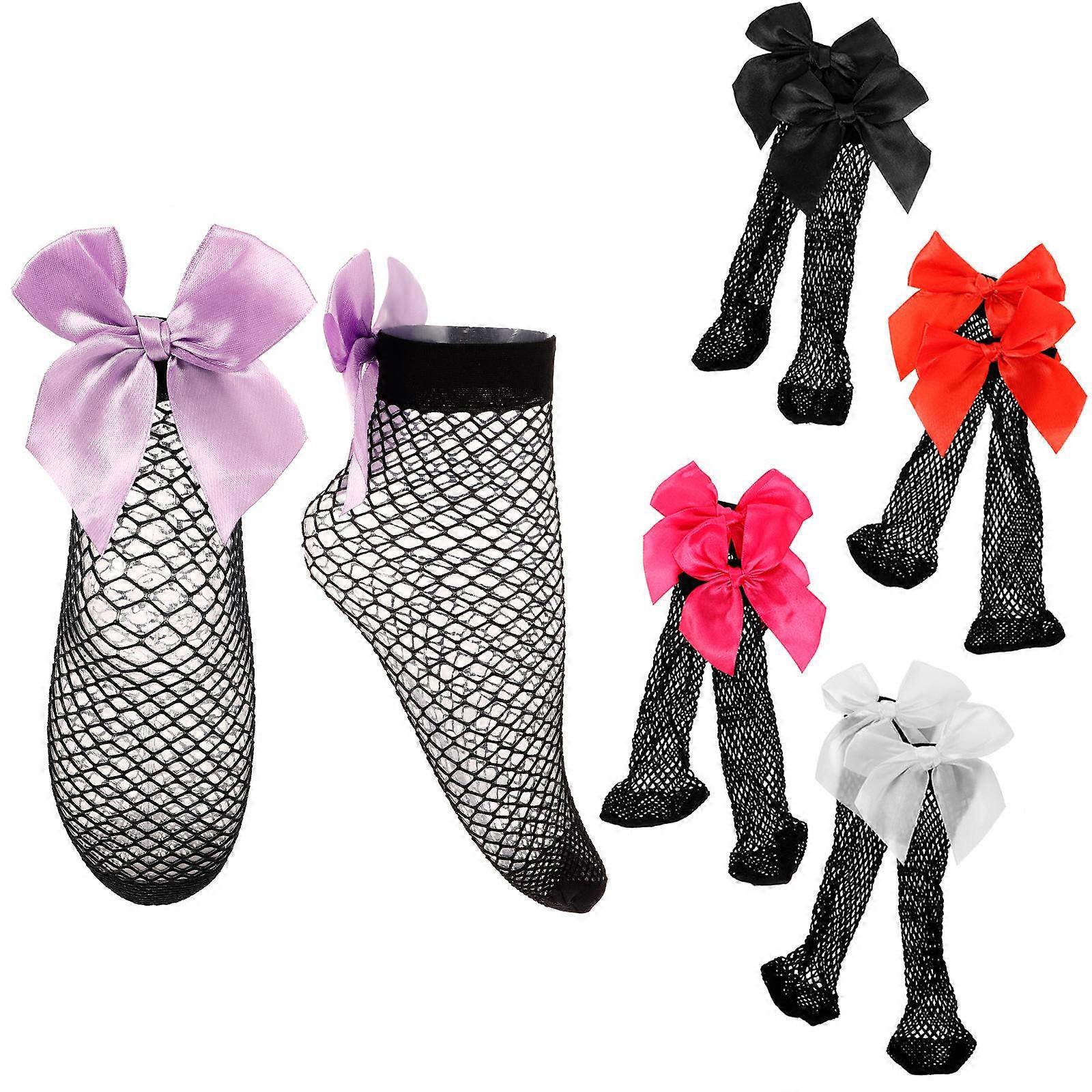 Women Lace Socks Ankle Length Sweet Bowknot Lace Net Socks for Lolita Fashion Red 5Pair