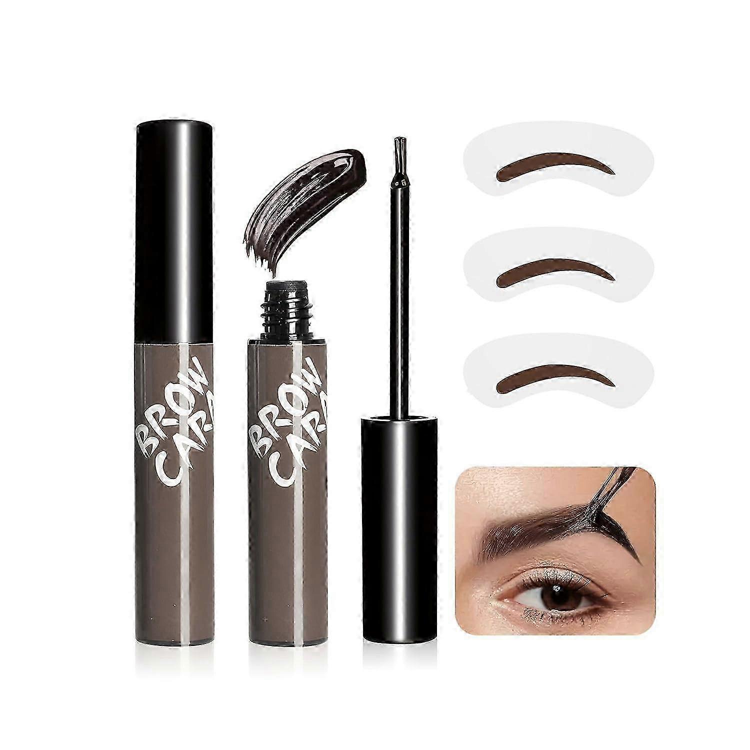 Brow Tattoo Peel Off Tint - 2pcs Eyebrow Gel Tint with Eyebrow Stencils Long-Lasting Makeup, Brow Gel Eyebrow Tattoos Waterproof