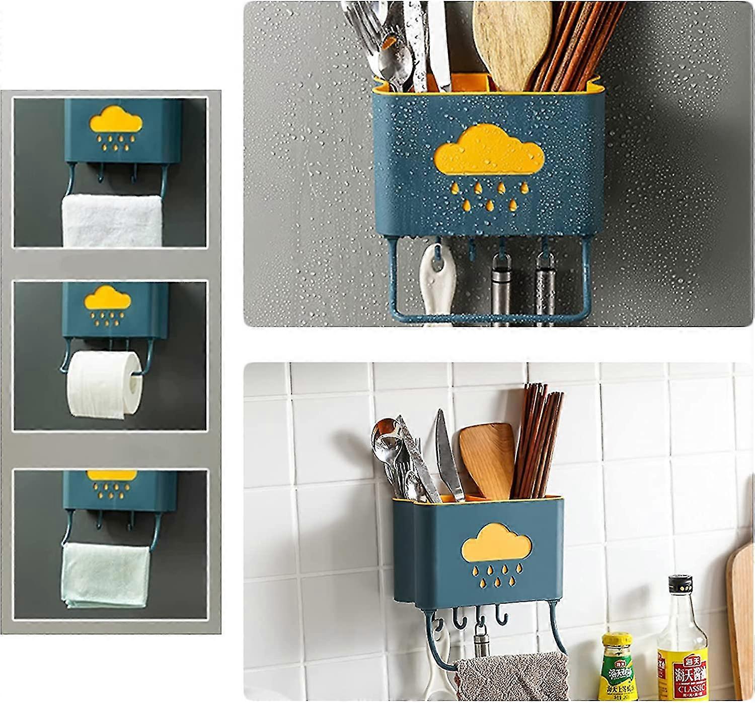 Wall-mounted Drain Cutlery Basket Chopstick Utensil Dryer Multifunctional Wall-mounted Chopstick Holder Cutlery Storage Drain Chopstick Cage Cutlery S
