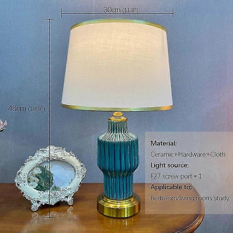Modern Blue Ceramics Table Lamp Led Vintage Simple Creative Bedside Desk Light For Home Living Room Bedroom Study
