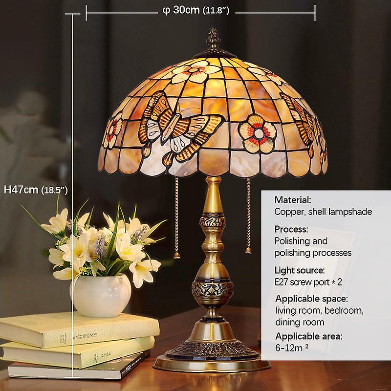 Modern Brass Tiffany Table Lamp Led European Retro Luxury Creative Shell Desk Light For Home Living Room Bedroom