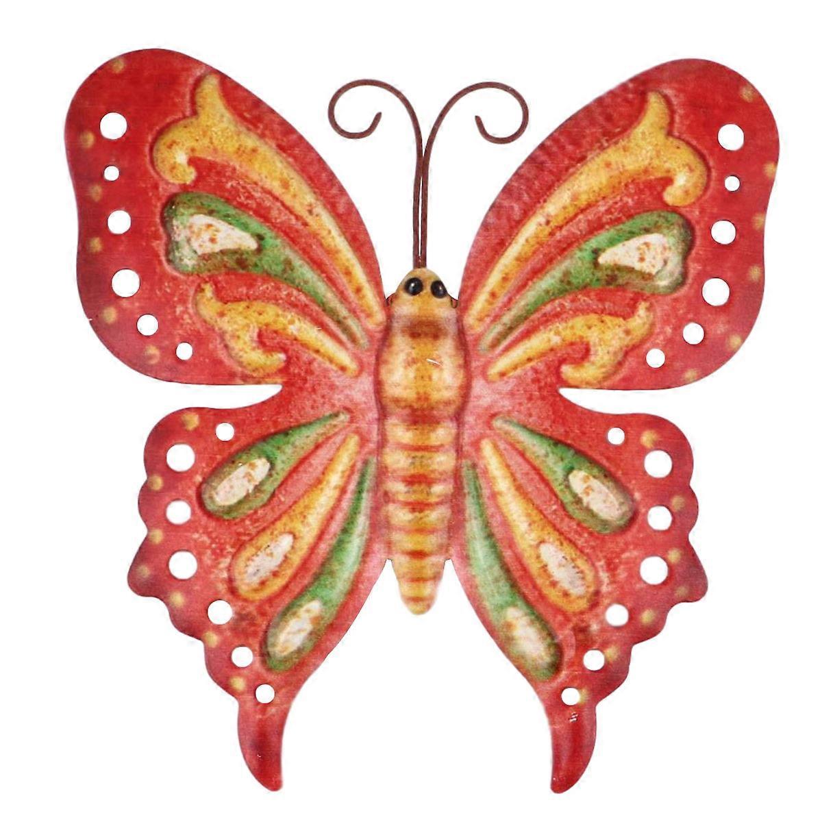 Red Iron Butterfly Wall Art Metal Ornament for Outdoor Patio Balcony Creative Decor Suitable for Indoor and Outdoor Use