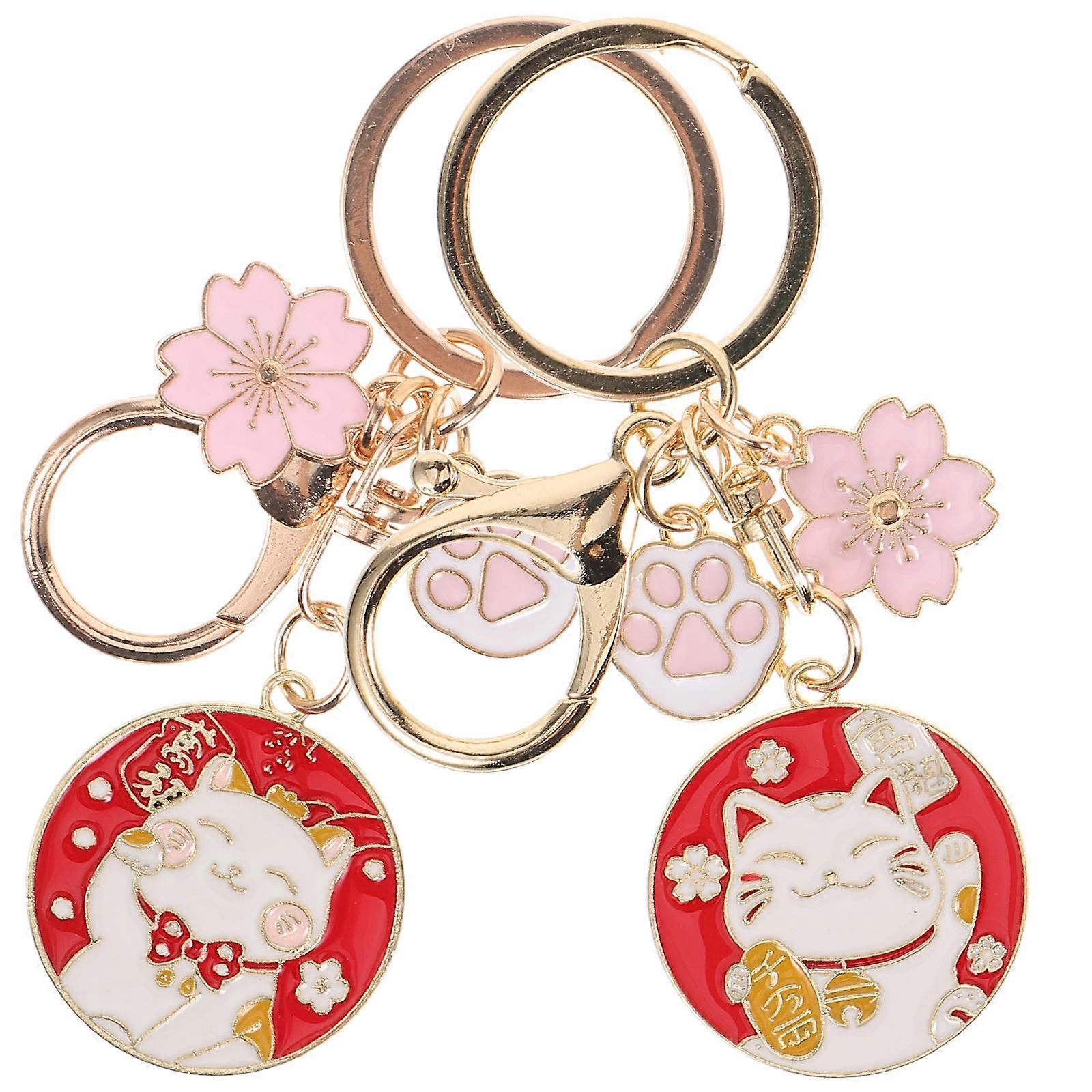 Luck Cat Keychain Alloy Cartoon Cat Claw Pendant for Decoration 2Pcs
