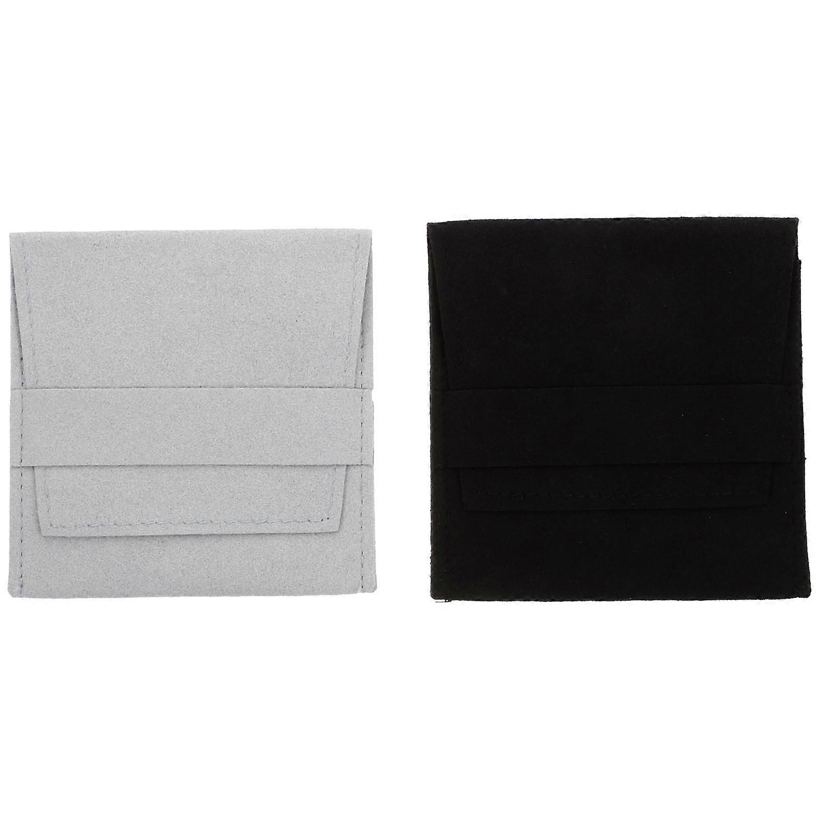 Protective Pouch Synthetic Material Durable Small Item Storage Jewelry Packaging Gray Color 8.5x8.2x0.5Cm 2Pcs