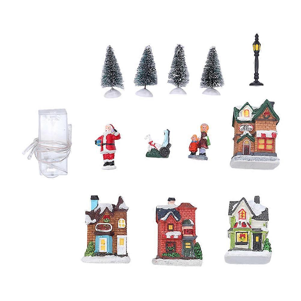 Festive Ornaments 1Set Xmas Party Decorative House Model LED Light Resin Adorn Assorted Color For Christmas Party