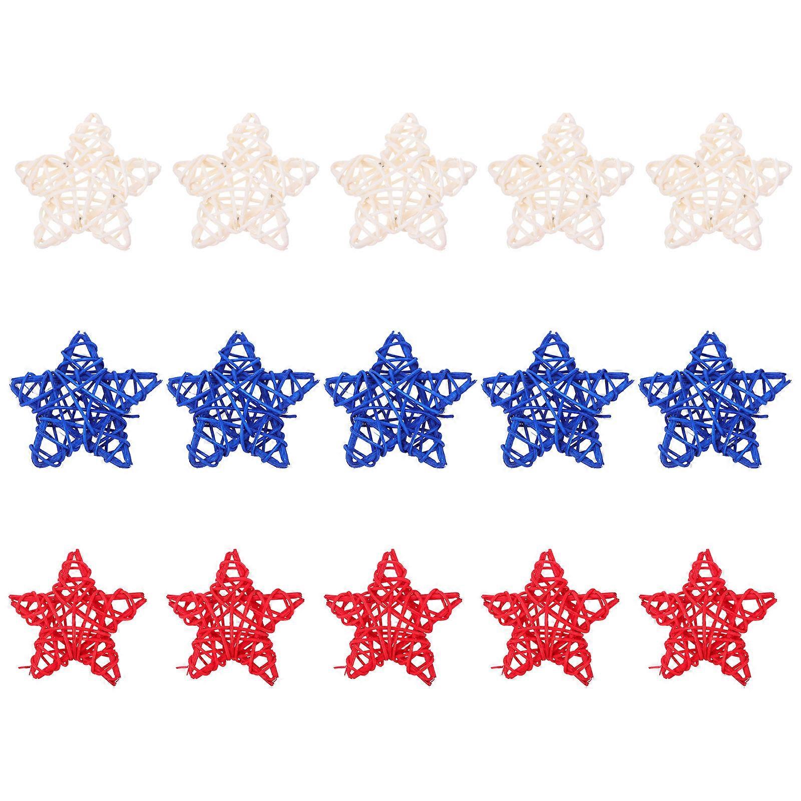 Hand Woven Ornaments Five-Pointed Star Decor Props Assorted Color Rattan Material Decorative 15Pcs