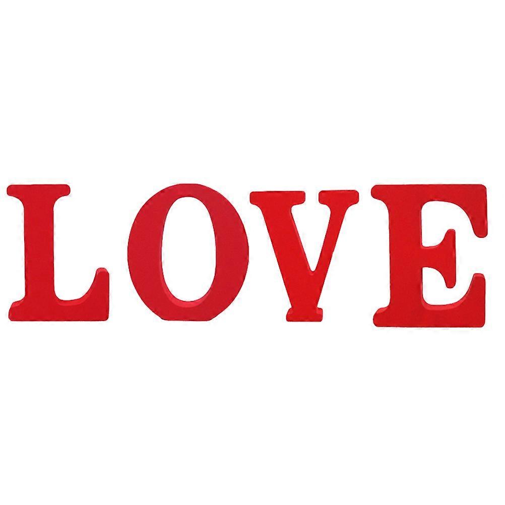 Word Ornaments Red Wooden Home Decorative Ornaments 4Pcs Square Shape For Home Decoration