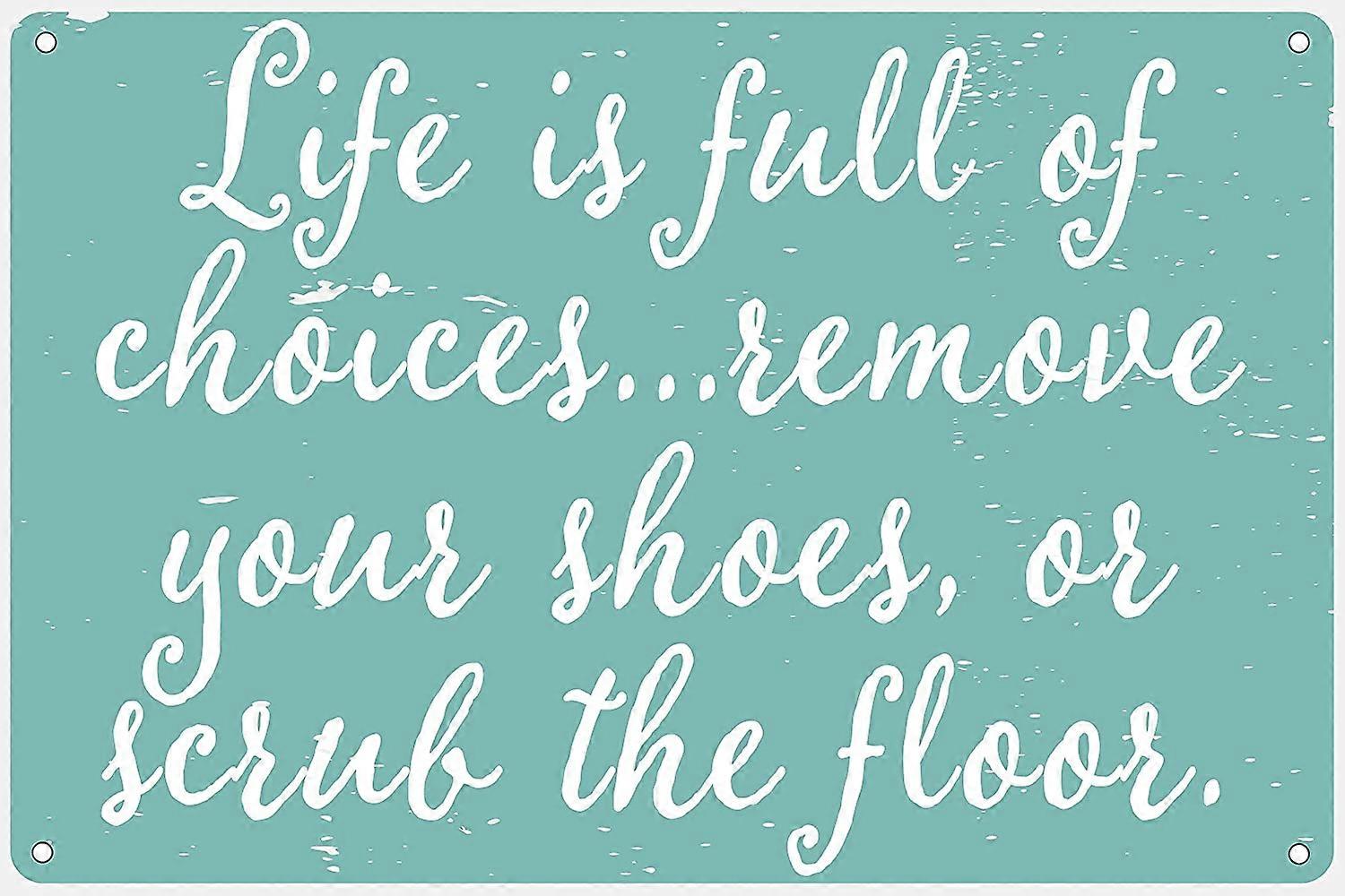 Life Is Full Of Choices Remove Your Shoes Or Scrub The Floor 12" x 8" Funny Tin Sign