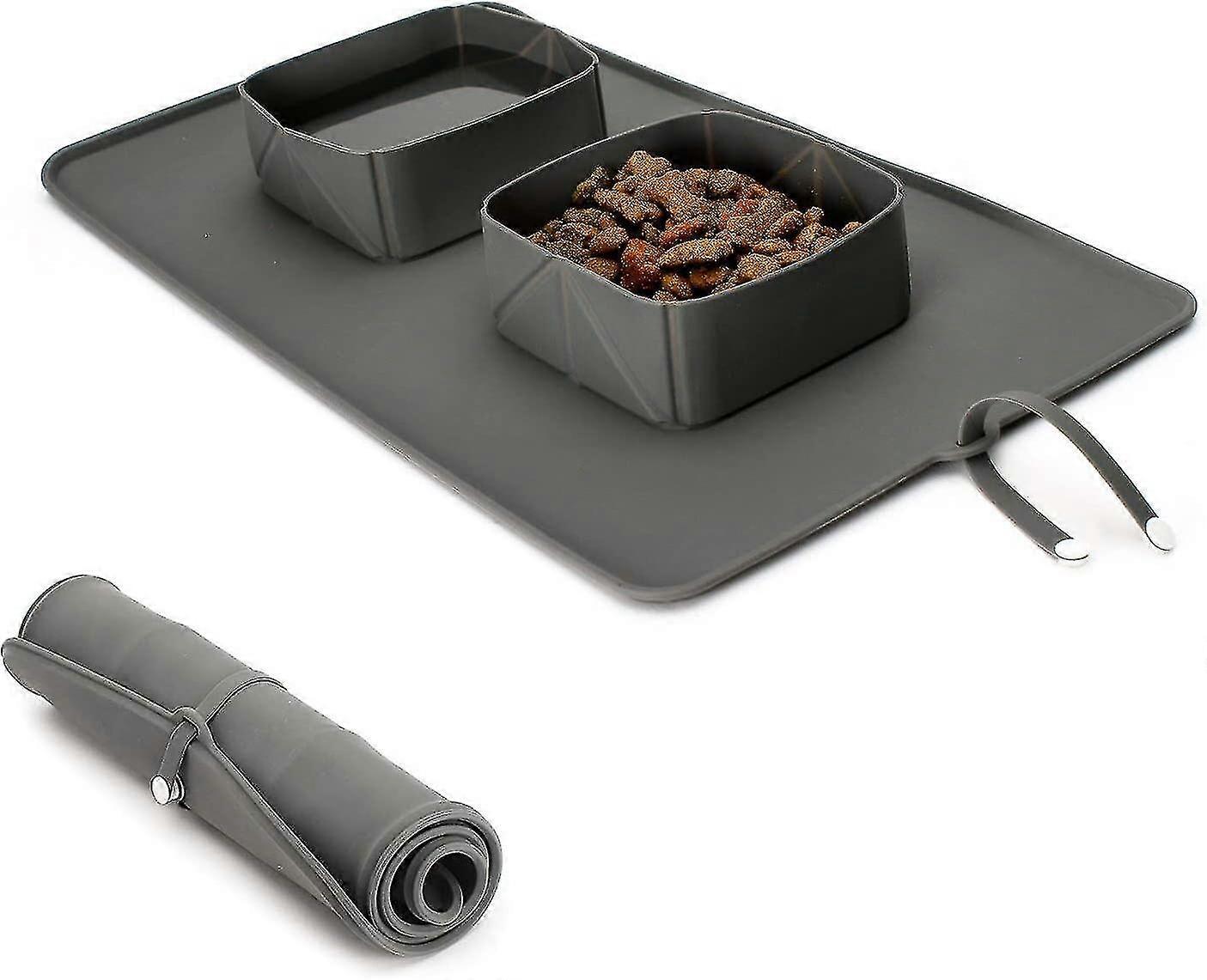Pet Bowl-silicone Folding Pet Bowl, Non-slip Dog And Cat Double Bowl, Storage Bag Dog Bowl