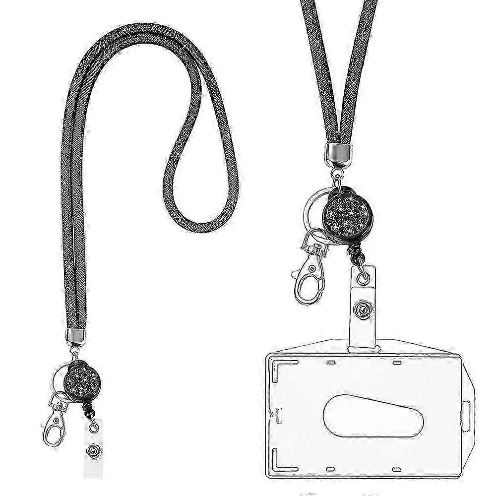 Crystal Beads, Lightweight Durable Lanyard with Retractable ID Badge Clip, Shiny Rhinestone Finish for Women